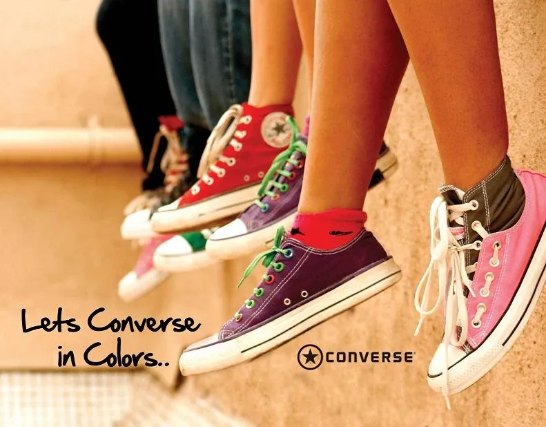 Линейки детской обуви хорошо работают для привлечения покупателей, и это активно используют спортивные бренды. Так, бренд Converce выстраивает вокруг детской темы все пространство некоторых своих фирменных магазинов: детские модели выставляют на подиум, или в пространство, оформленное огромными постерами с улыбающимися детскими лицами.