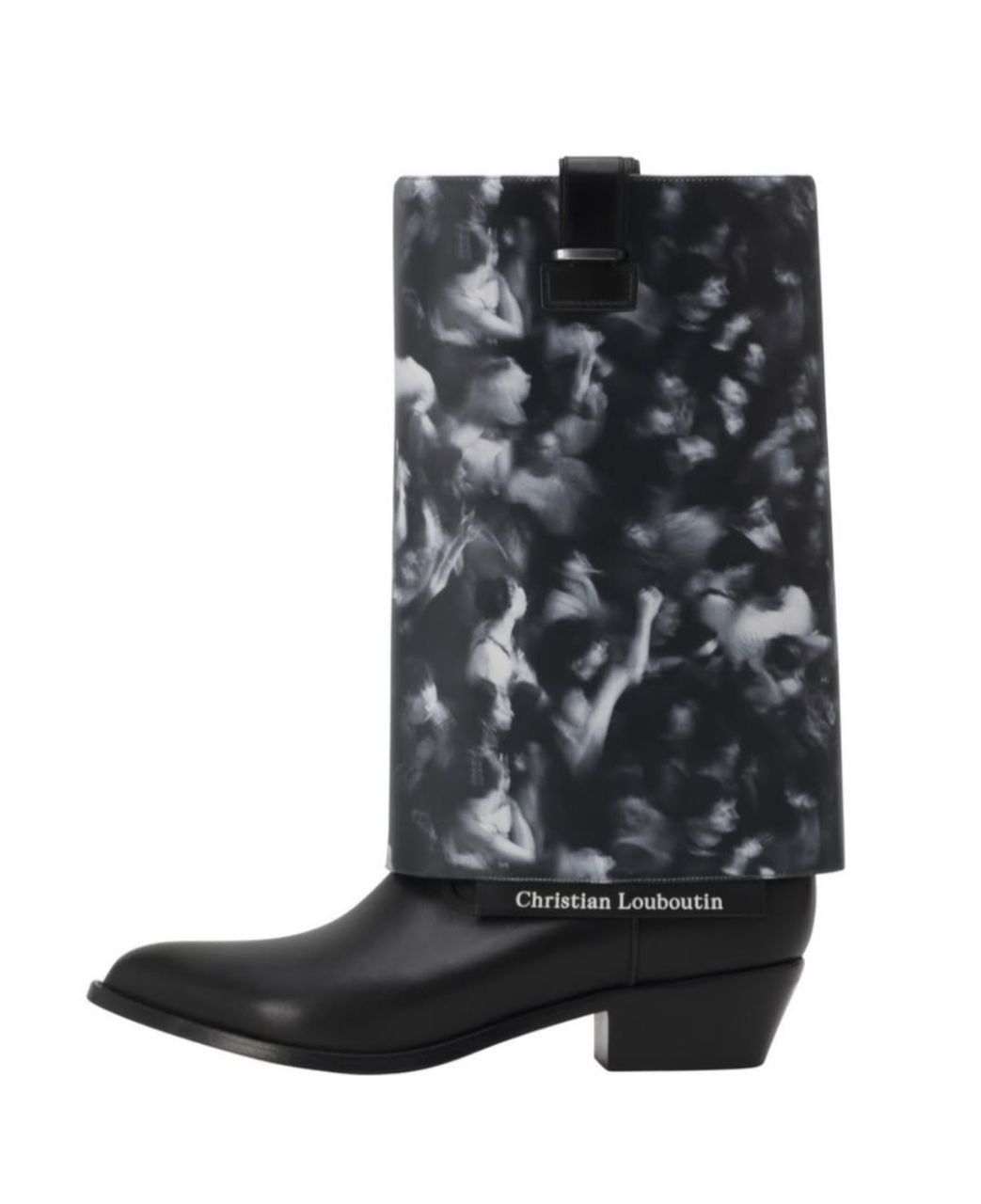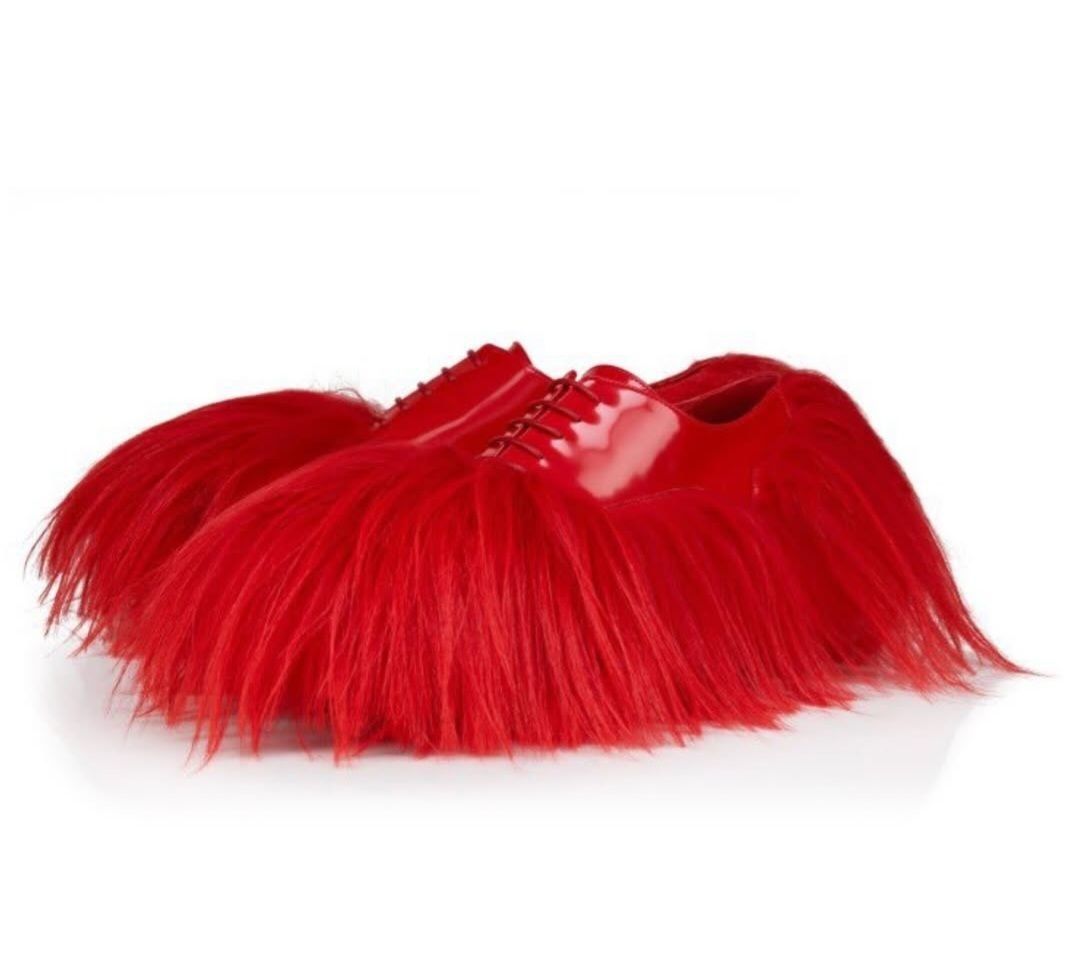 Вечерние туфли перфорированы отверстиями, напоминающими швейцарский сыр, и дают возможность их владельцу получить столько вариантов дизайна обуви, сколько у него носков. В общей канве особенно выделяются сапоги из искусственного меха фирменного для Louboutin красного цвета.