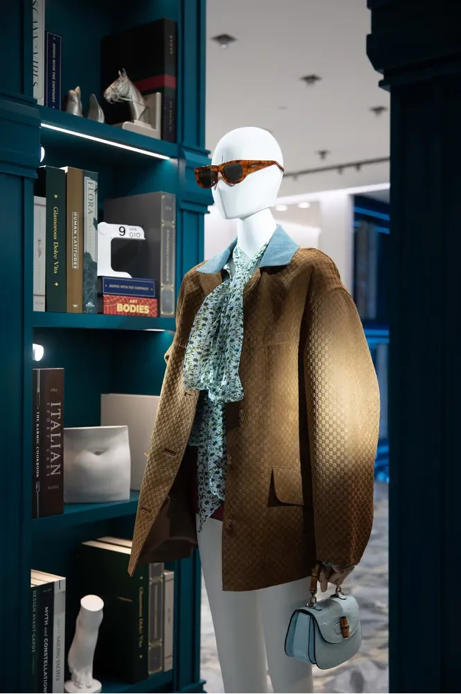 Итальянский люксовый бренд Gucci вновь хочет ассоциироваться с интеллектуальным, культурным и вечным. Витрины флагманских бутиков Gucci в Милане, Лондоне, Париже, в Сеуле, Нью-Йорке, Лос-Анджелесе и Токио демонстрируют изделия бренда на фоне библиотечных полок с книгами по искусству.