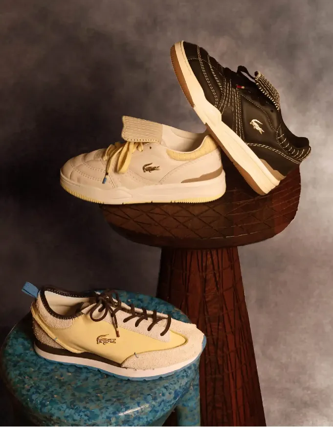 Дизайн кроссовок построен на оригинальных сочетаниях фактур и цветов, акцентом становится контрастная строчка и золотой крокодильчик – бессменный логотип Lacoste, который в данном случае, помимо прочего, - отсылка к миниатюрным гирям Akan, используемым для измерения веса золота в Западной Африке. Цена пары кроссовок - 160 евро.