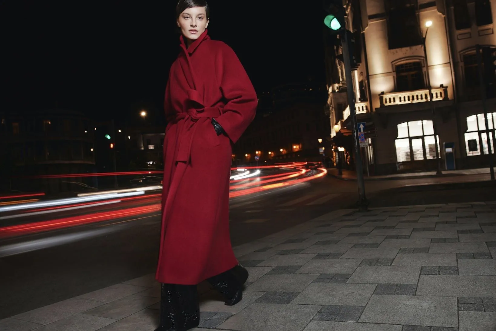 В женской линии — шерстяные пальто с мягкой линией плеча, изделия из натуральной кожи, костюмные комплекты из 100% шерсти и тканей в елочку, трикотаж и деним — от базовых моделей до акцентных позиций с драпировками и фактурными деталями, включая выразительные пуговицы и застежки-броши.