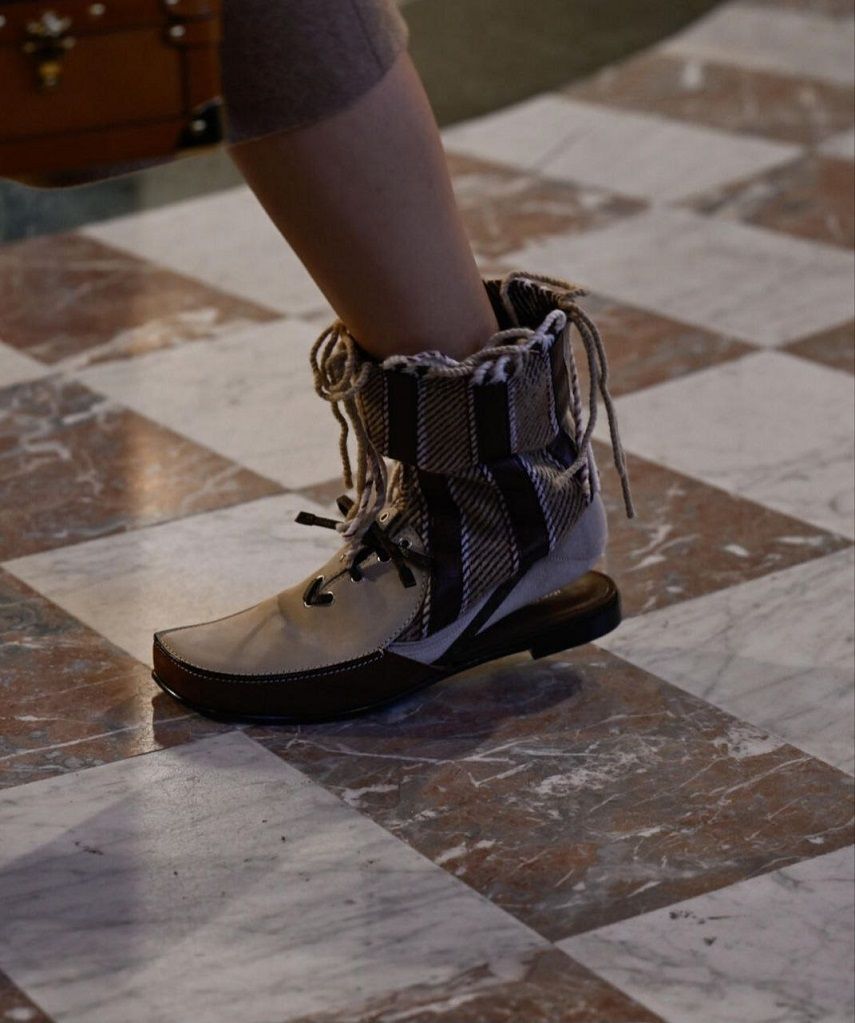 Фоном для показа коллекции на Неделе моды стали дворцовые залы Лувра, в которые на момент креативный директор Louis Vuitton Николя Жескьер представил домом, в котором уместно перемещаться в уютной домашней обуви.