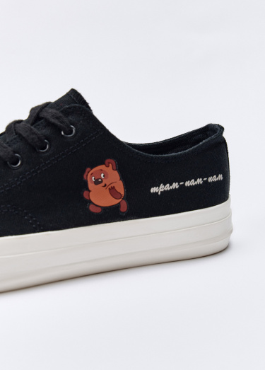 В коллекции Sela x «Союзмультфильм» — базовые кеды в чёрном и белом цветах, украшенные персонажами известных советских мультфильмов. Изображения Винни-Пуха, котёнка по имени Гав, попугая Кеши, Волка…