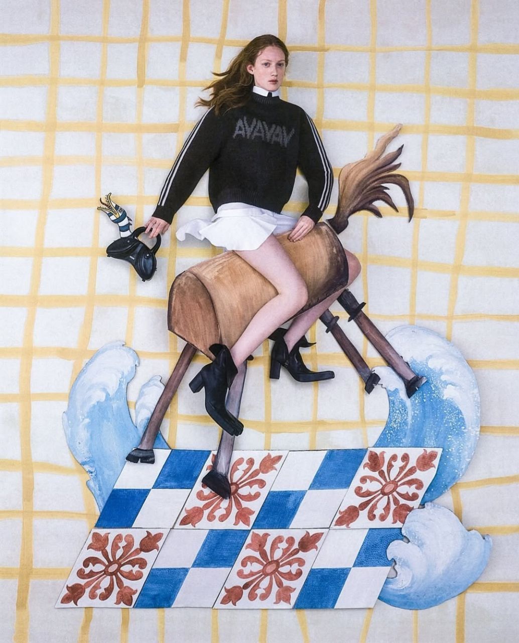 Выход коллекции сопровождается столь же необычной рекламной кампанией, снятой венгерским фотографом Сильвестром Мако. Модели, демонстрирующие обувь и одежду коллаборации, изображены на раскрашенных фонах и зеркальных текстурах, они демонстрируют движение, замирая в момент съемки. Расположение предметов и иллюстрации создают эффект абсурдных мультяшных образов.