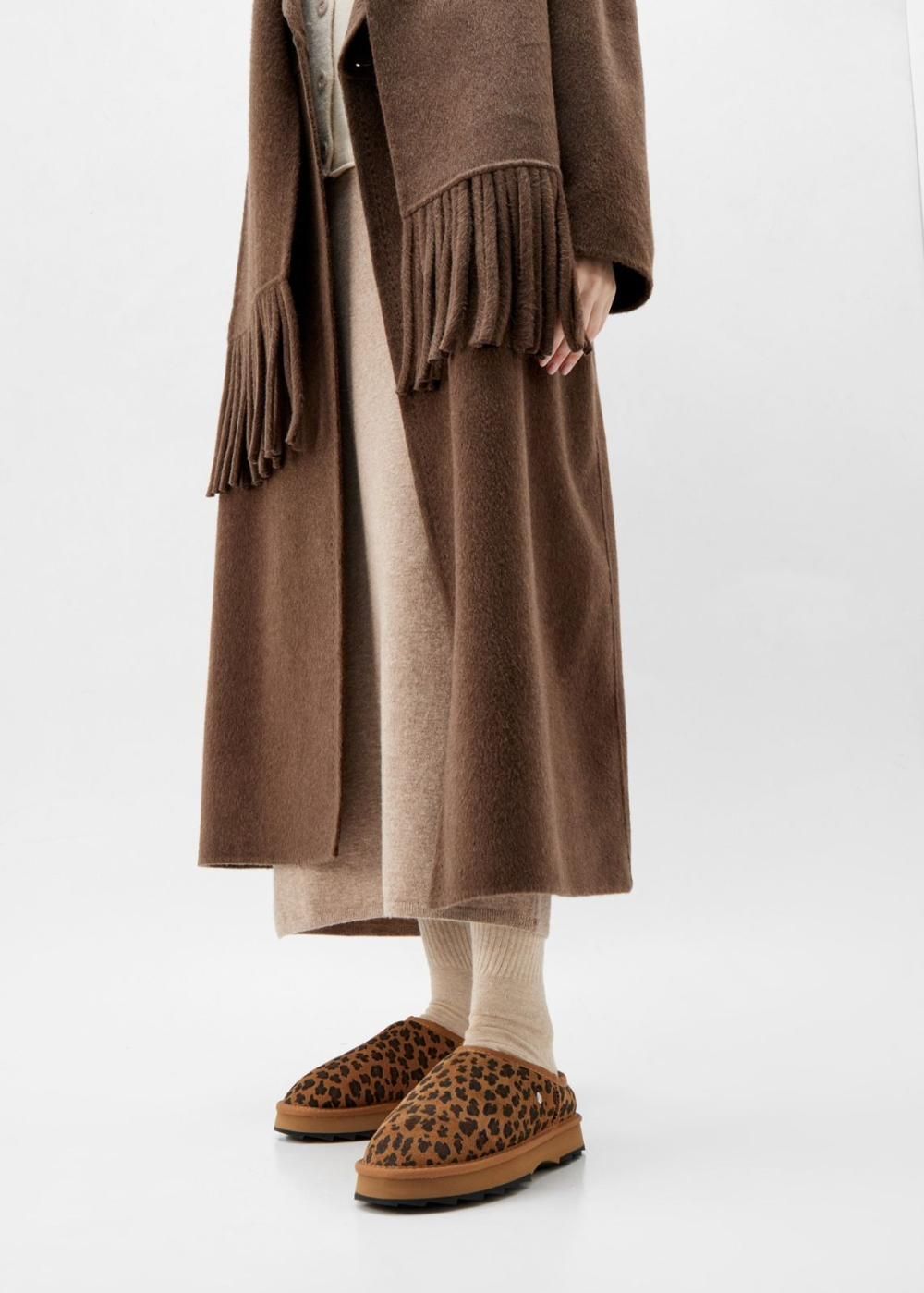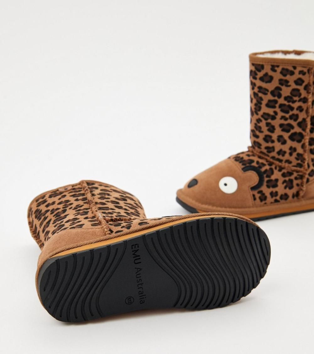 Маркетплейс и австралийский бренд на этой неделе представили эксклюзивную леопардовую капсулу, в которую вошли женские полусапоги из натуральной овчины (угги), уличные тапочки (мюли) из овчины, наушники и детские леопардовые сапожки из замши, утепленные натуральной шерстью.