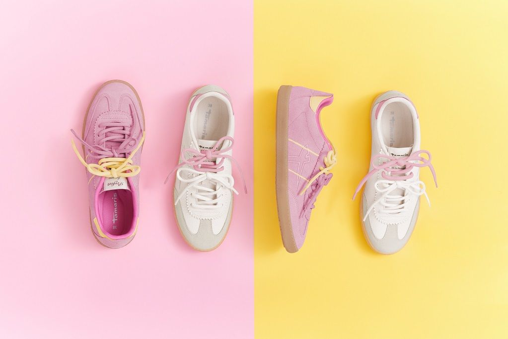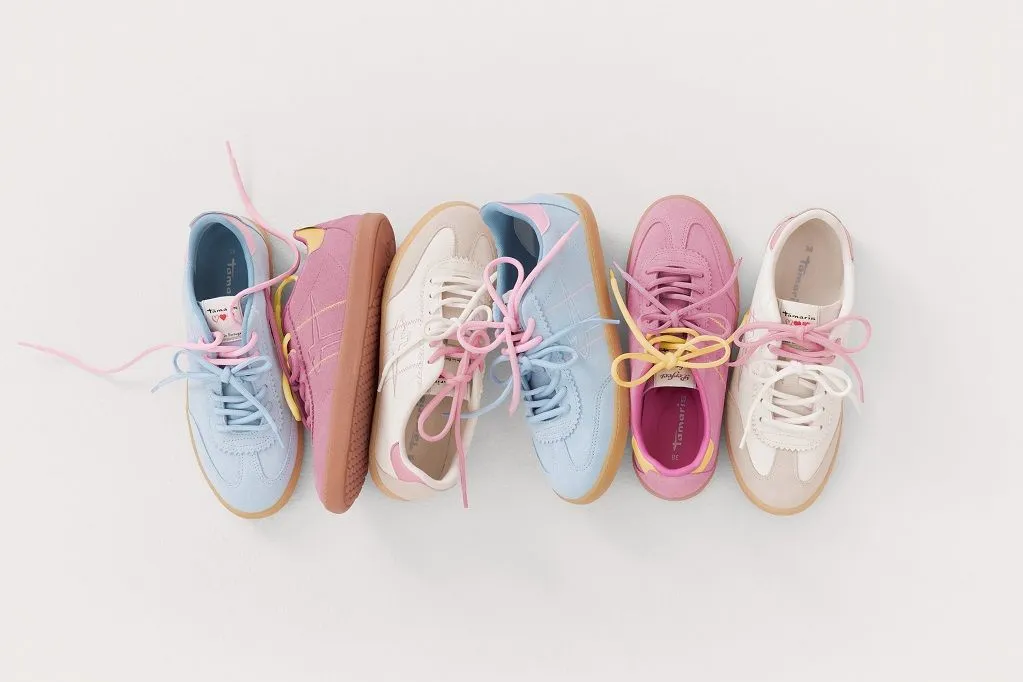 Облегченные кроссовки Sneakerina, которые соединяют в себе спортивный стиль, женственные формы и дизайн в нежной цветовой гамме входят в линейку Tamaris Urban Freshness.