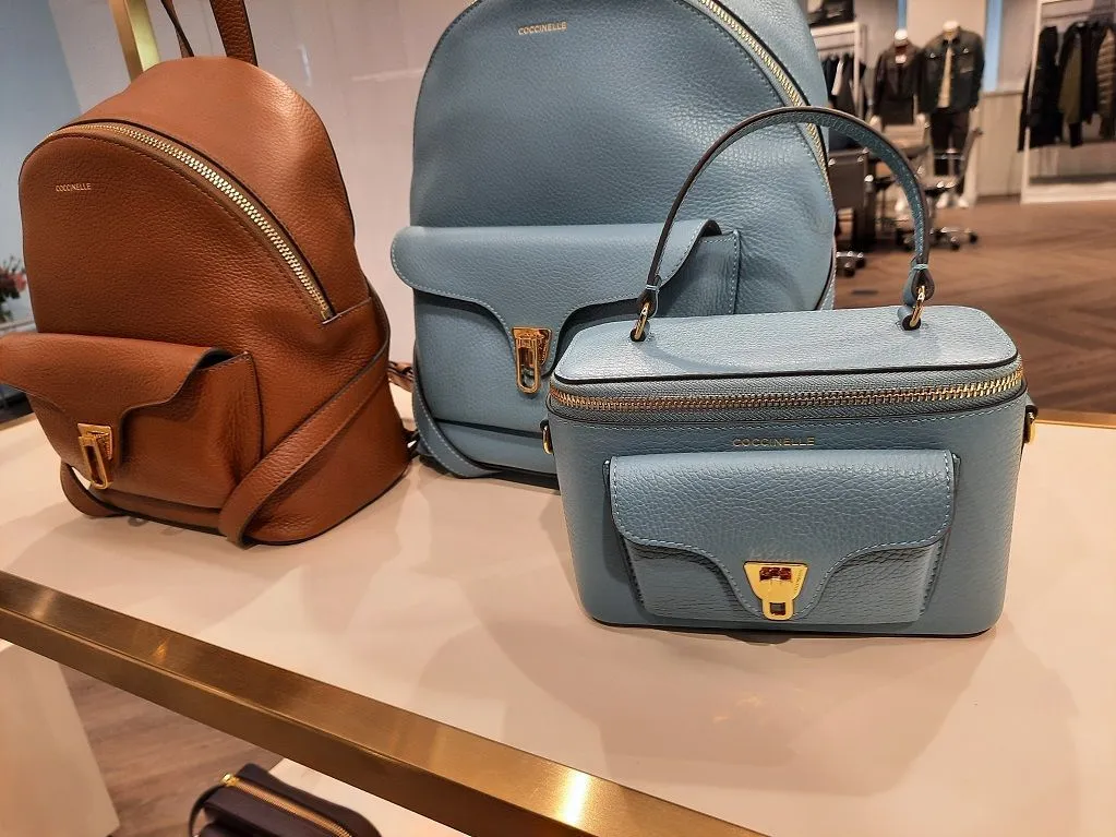 Лого в виде фигурной буквы C итальянского алфавита становится главным элементом дизайна сумок и некоторых моделей обуви Coccinelle.