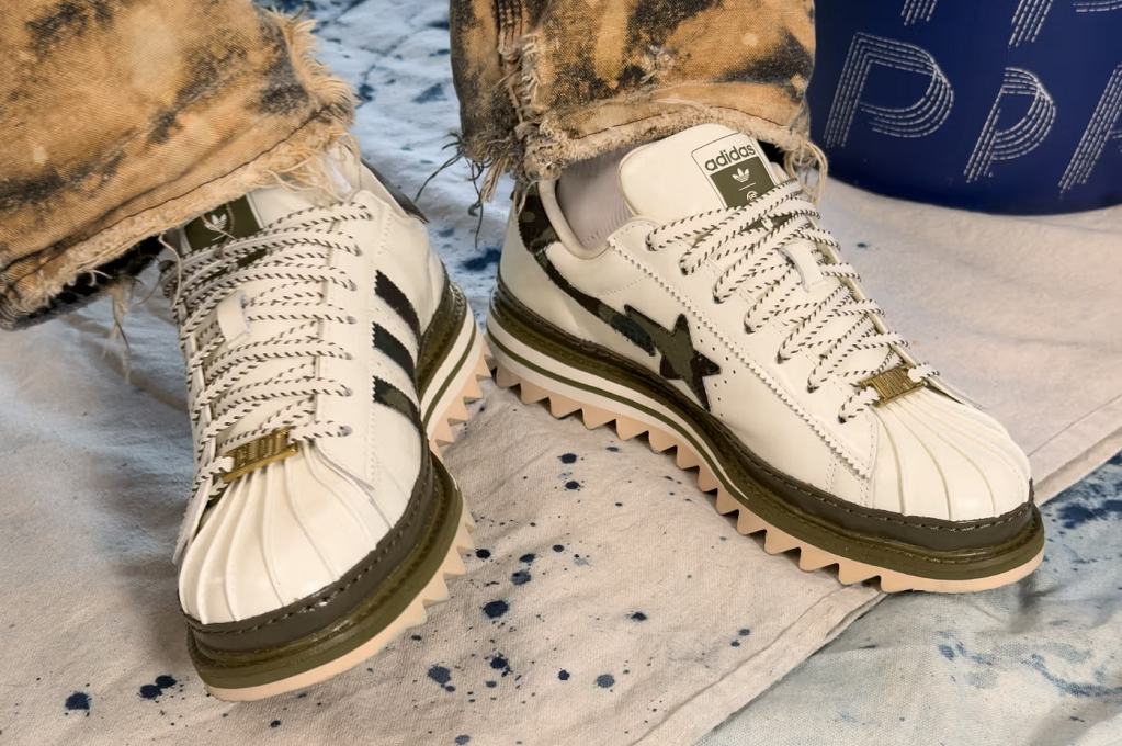 Два бренда уличной моды – гонконгский CLOT и японский BAPE преобразили кроссовки Adidas Superstar в недавней коллаборации с немецким брендом.