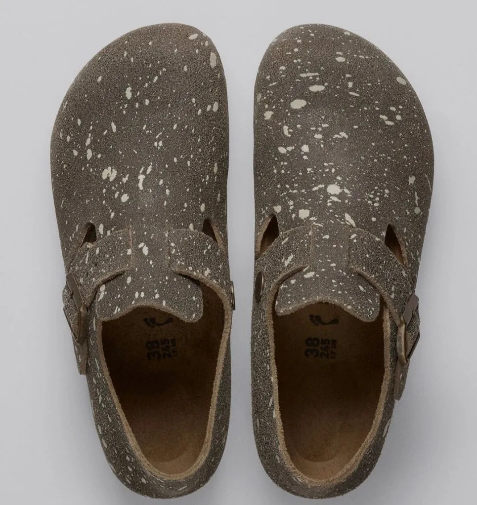 Для образа Художник модель замшевых сандалий London обрела верх в художественную крапинку.