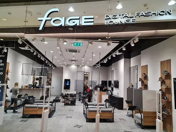 Торговое пространство магазина предполагает несколько вариантов зон для примерки обуви, в том числе зоны, оборудованные планшетами, которые позволяют ознакомиться со всем ассортиментом обувных брендов холдинга и его партнеров. В магазине FAGE в одном пространстве представлена обувь всех брендов из портфеля Zenden Group – Zenden, Mascotte и Thomas Munz, а в перспективе ассортимент может быть еще расширен за счет обуви сторонних партнерских брендов.